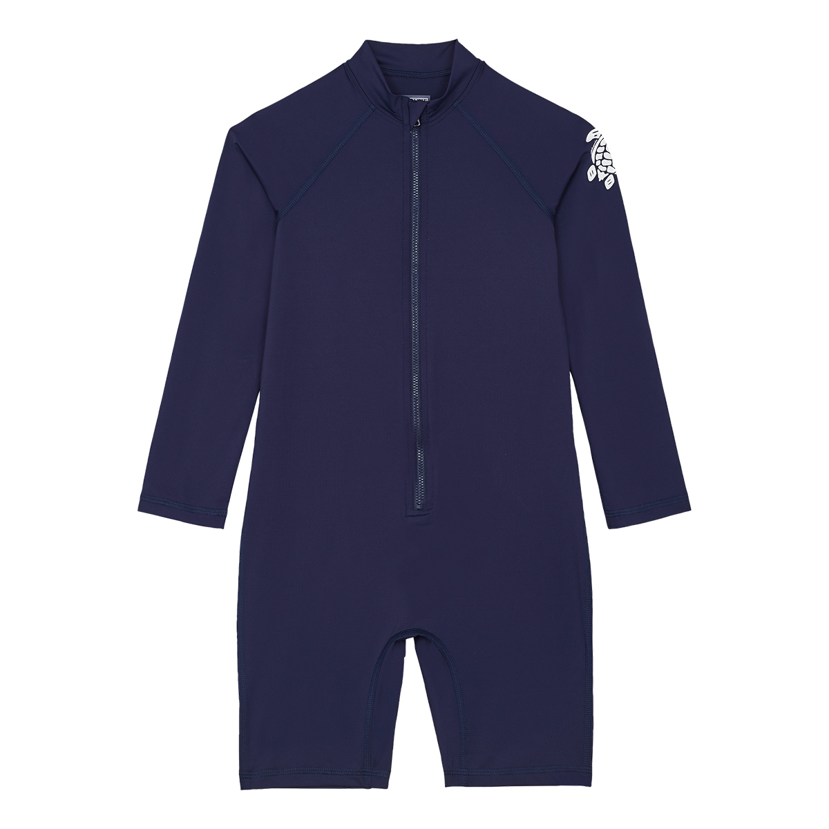 Minik çocuklar için tasarlanmış, yumuşak, geri dönüştürülmüş poliamid ve elastandan yapılmış bu UV korumalı plaj tulumu ile minikler güneşte güvende olacak.