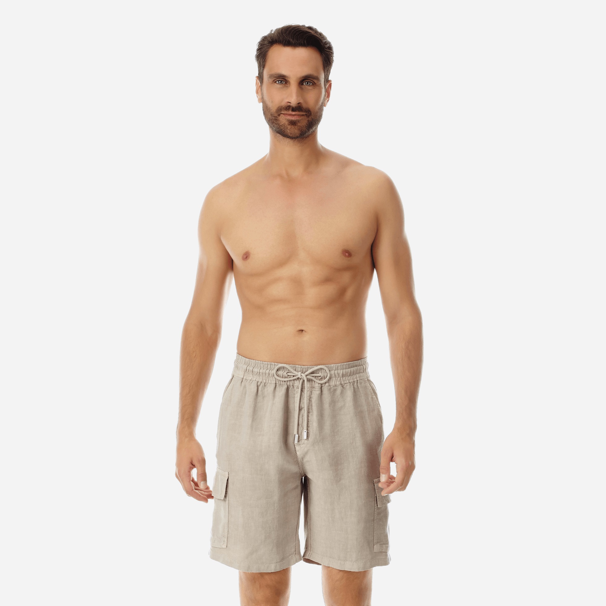 Esnek ve rahat keten kumaştan üretilen, zamansız ve rahat Baie erkek bermuda şortları, Vilebrequin koleksiyonunun önemli bir parçasıdır.