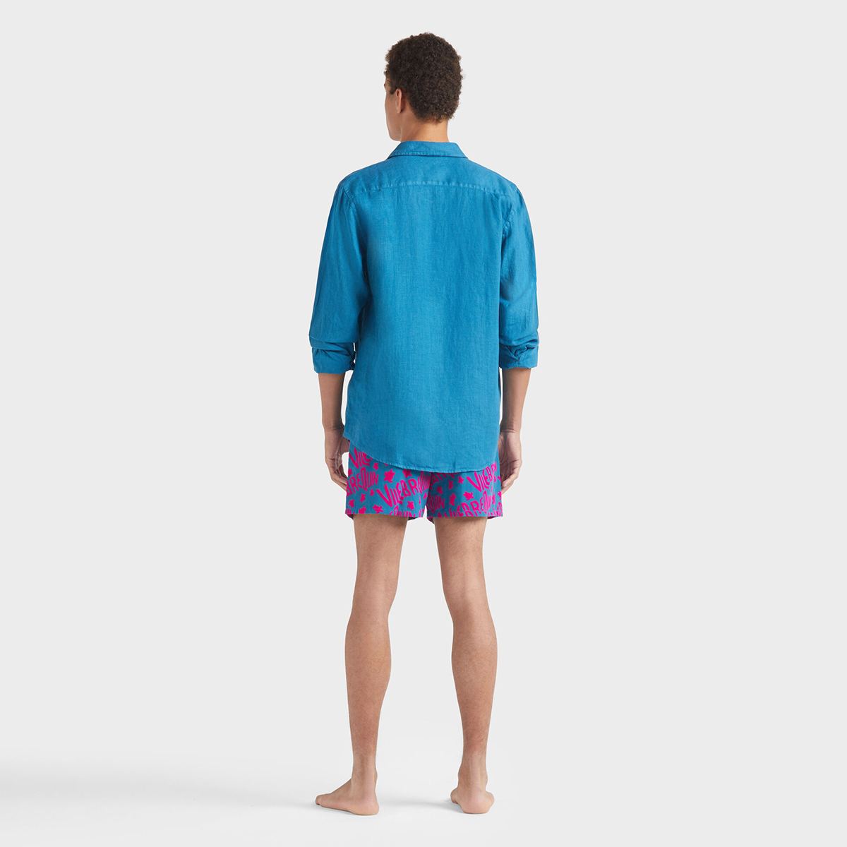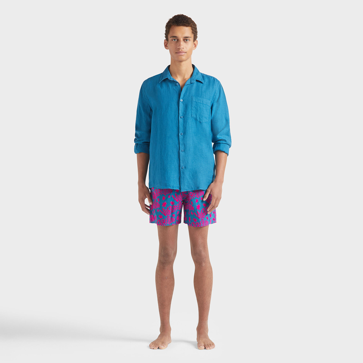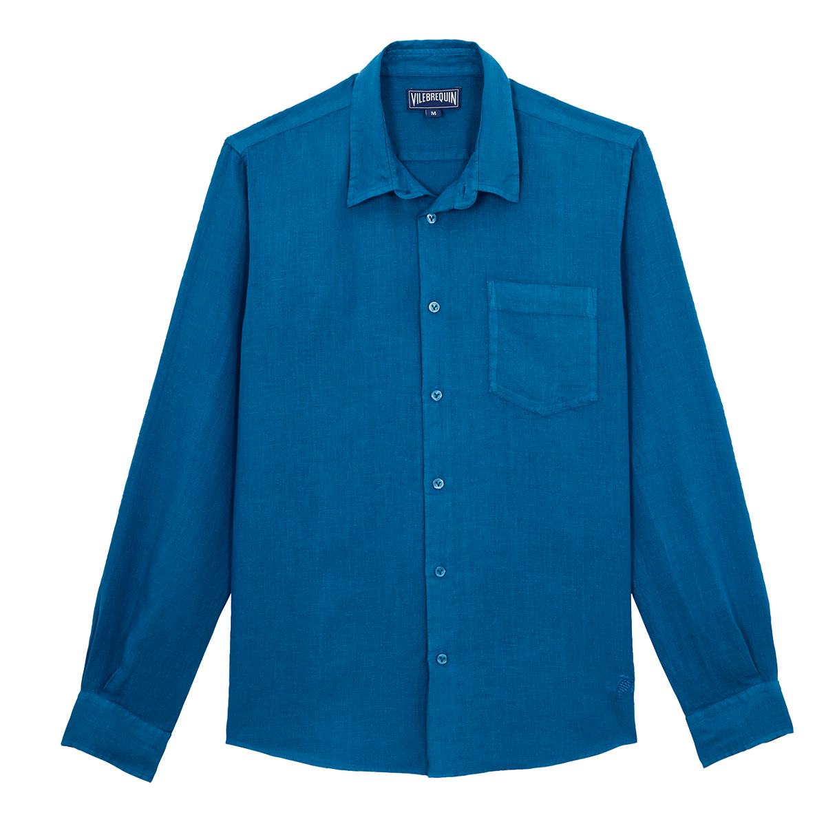 Caroubis uzun kollu keten gömlekler, Vilebrequin’in St Tropez’den ilham alan stilini klasik, sade bir kesimle gösteriyor. Yumuşak keten kumaştan yapılmış bu gömlek, eteğinde aynı tonda işlenmiş ikonik kaplumbağa logosu ile dikkat çekiyor.