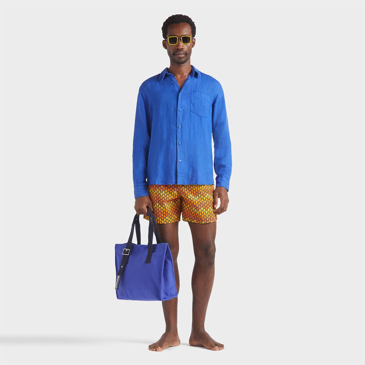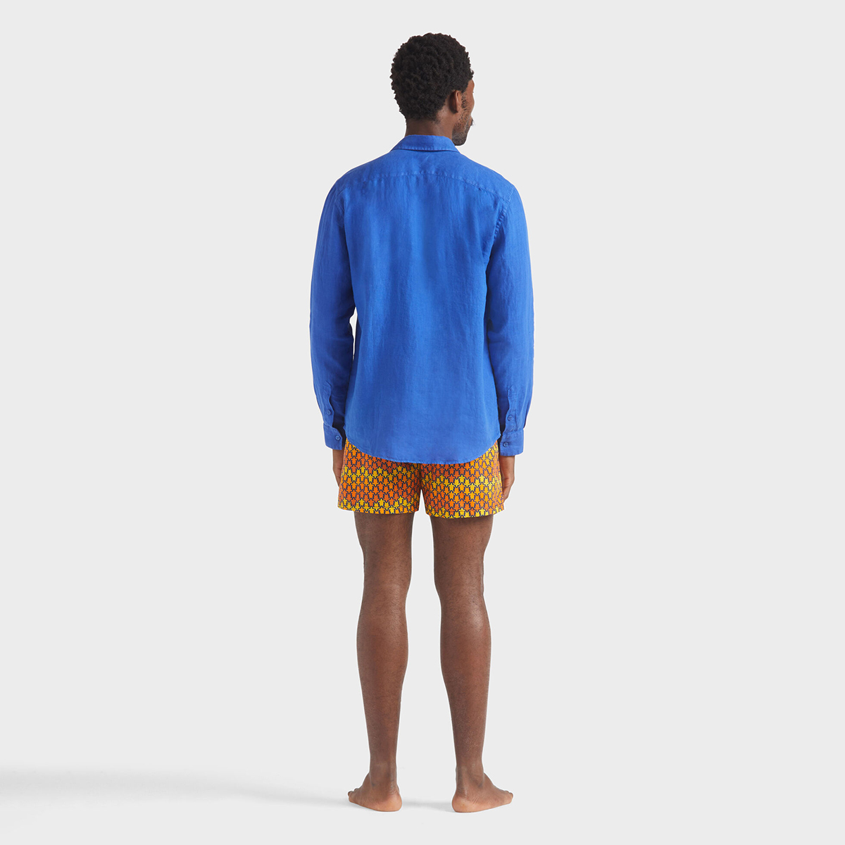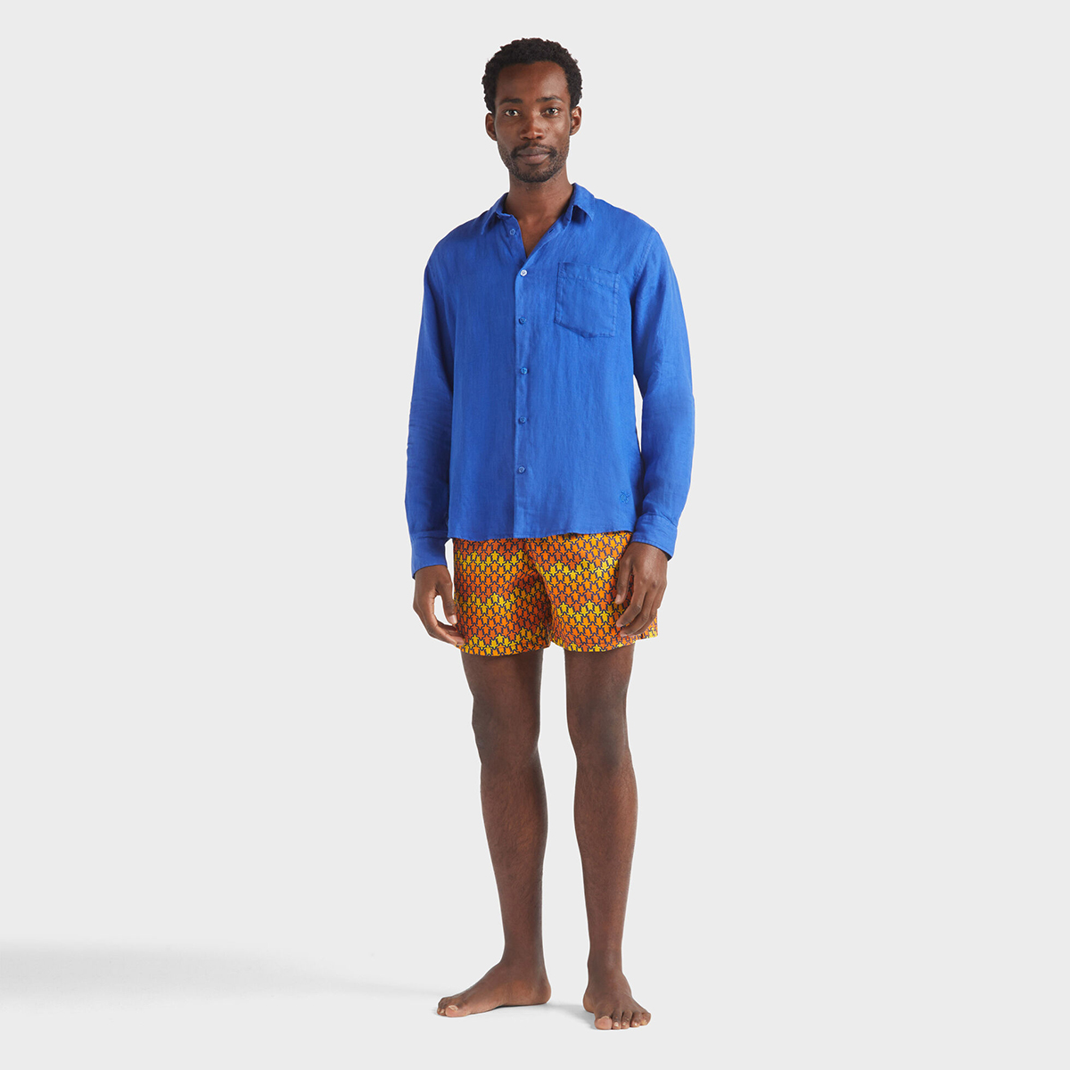 Caroubis uzun kollu keten gömlekler, Vilebrequin’in St Tropez’den ilham alan stilini klasik, sade bir kesimle gösteriyor. Yumuşak keten kumaştan yapılmış bu gömlek, eteğinde aynı tonda işlenmiş ikonik kaplumbağa logosu ile dikkat çekiyor.