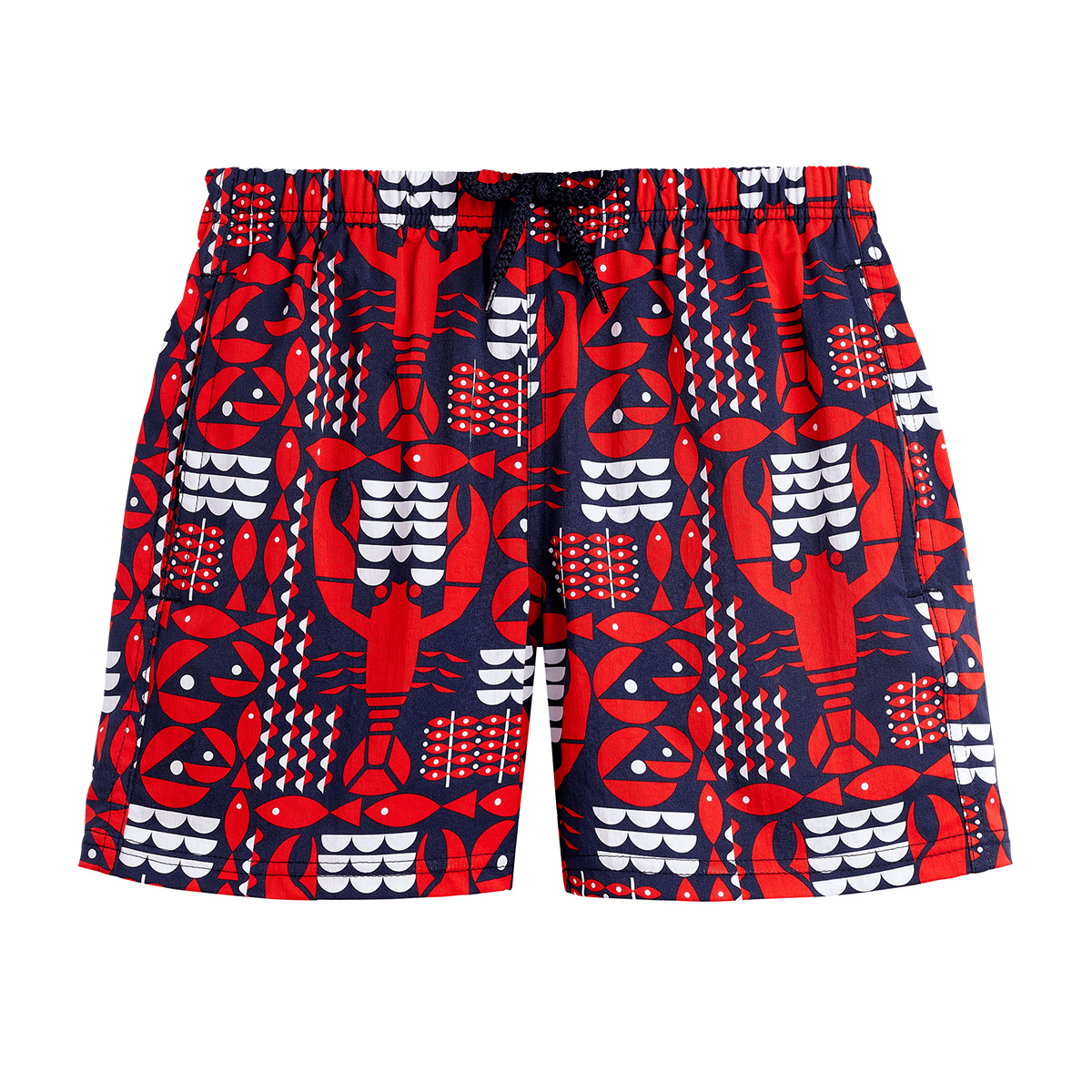 Yumuşak ve hafif Jirise erkek çocuk yüzme şortu, streç kalıbıyla Vilebrequin tasarımına yeni bir yorum getiriyor. Erkek Moorise modelinin çocuklar için uyarlanmış bu versiyonu iki yan ceplerine ek olarak sabit bir düğüme, elastik bel bandına ve arka cebe sahiptir.
