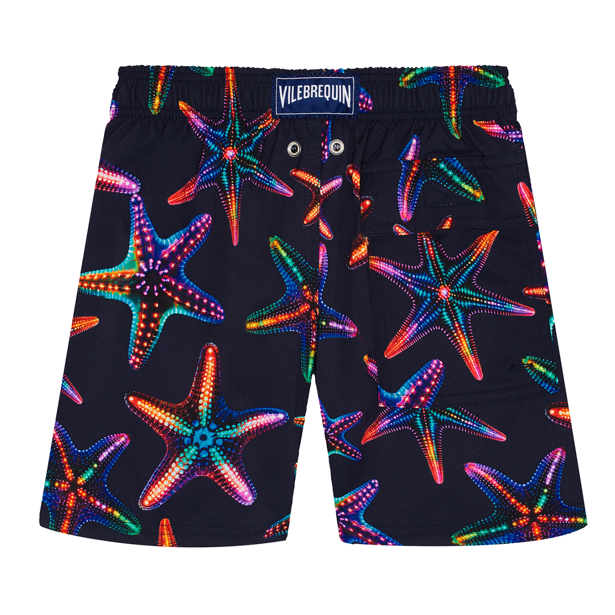 Yumuşak ve hafif Jirise erkek çocuk yüzme şortu, streç kalıbıyla Vilebrequin tasarımına yeni bir yorum getiriyor. Erkek Moorise modelinin çocuklar için uyarlanmış bu versiyonu iki yan ceplerine ek olarak sabit bir düğüme, elastik bel bandına ve arka cebe sahiptir.