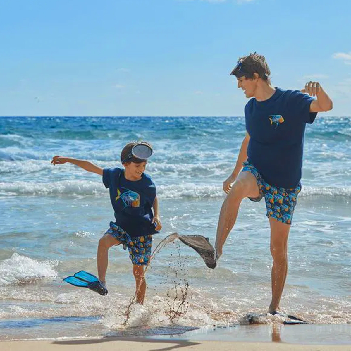 Bu sezonun favori baskısı Piranha ile dikkat çeken bu çocuk tişörtü 2023 Babalar Günü koleksiyonunun tamamlayıcısıdır. %100 organik pamuktan üretilen Teddy erkek çocuk pamuklu tişörtü kısa kollu, bisiklet yakalıdır ve arkasında iki adet kuş gözü detayına sahiptir.