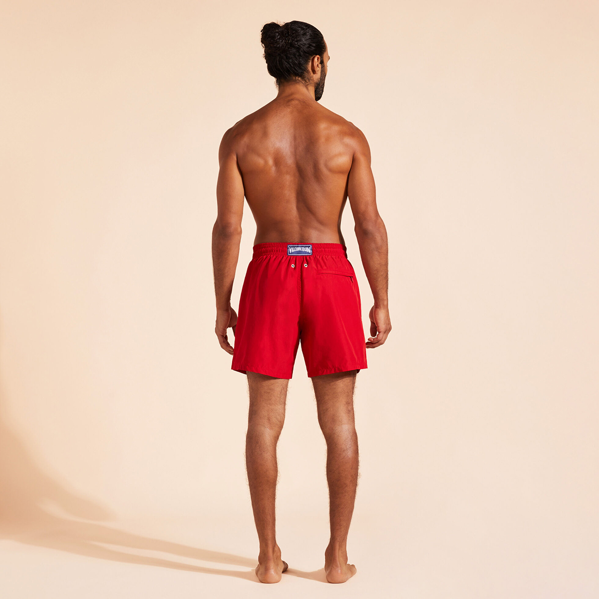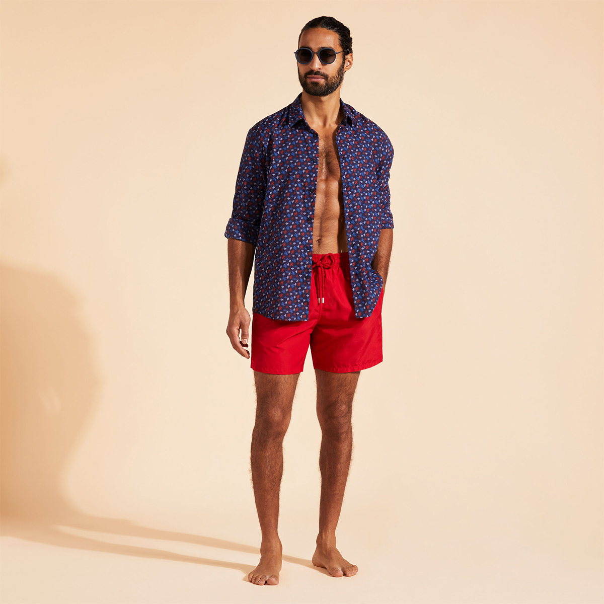Bu çok hafif kumaşı ile dikkat çeken mayo, katlanarak arka cebine sığıyor ve üzerinde kauçuk Vilebrequin logosu yer alan bir keseye dönüşebiliyor.