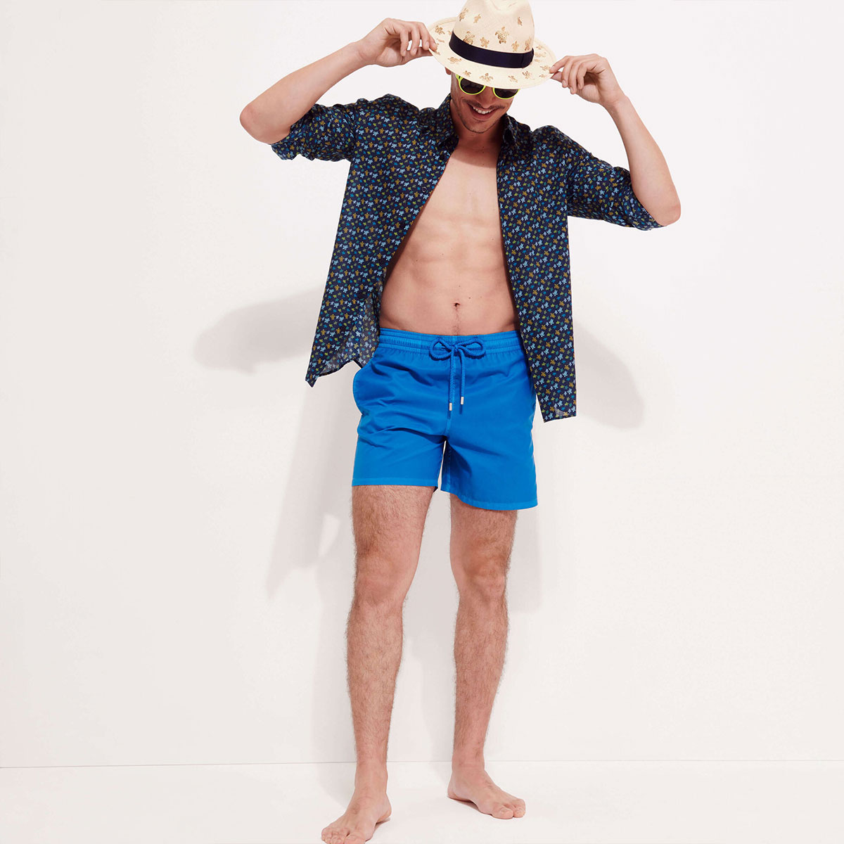 Bu çok hafif kumaşı ile dikkat çeken mayo, katlanarak arka cebine sığıyor ve üzerinde kauçuk Vilebrequin logosu yer alan bir keseye dönüşebiliyor.