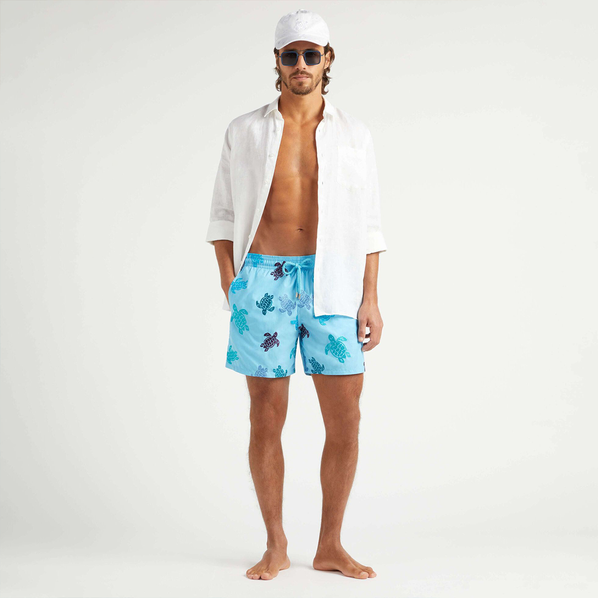 Sınırlı sayıda ve numaralandırılmış olarak üretilen MISTRAL erkek yüzme şortları, tamamen işlemeli tasarımı ve büzme ipindeki gümüş uçlar ile mükemmellik sevenler için tasarlandı.