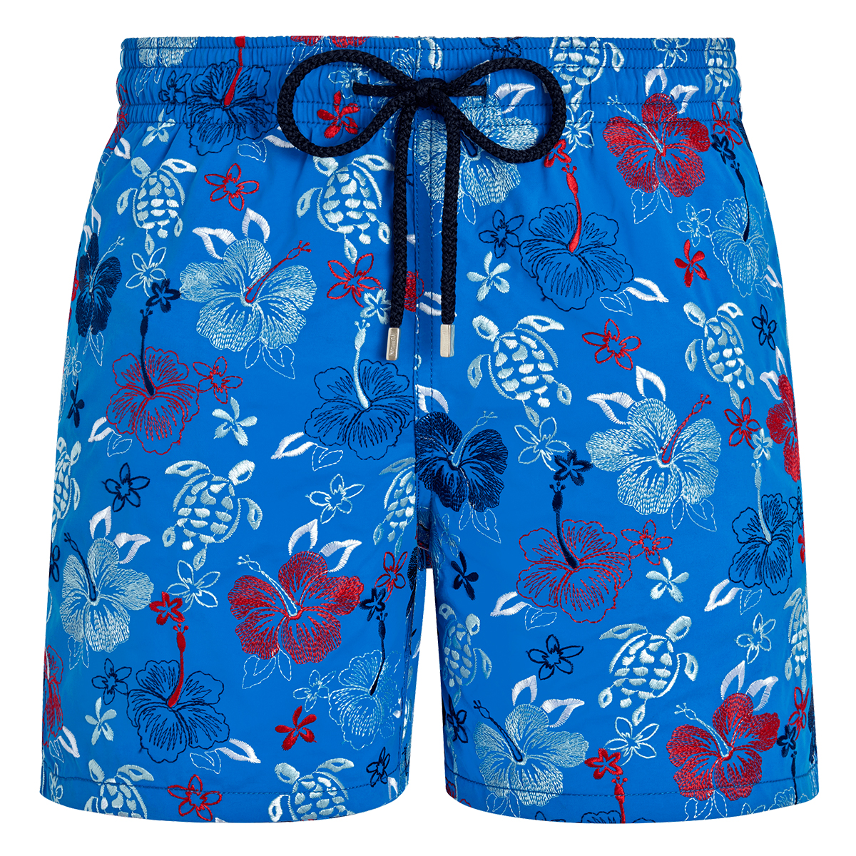 Sınırlı sayıda ve numaralandırılmış olarak üretilen MISTRAL erkek yüzme şortları, tamamen işlemeli tasarımı ve büzme ipindeki gümüş uçlar ile mükemmellik sevenler için tasarlandı. Mayo üzerinde ikonik kaplumbağa logo işlemeleri Gümüş uçlar (925 ayar sertifikalı) Kişiselleştirilmiş yuvarlak kaplumbağa düğmeli arka cep Bel arkasında ikonik Vilebrequin logo