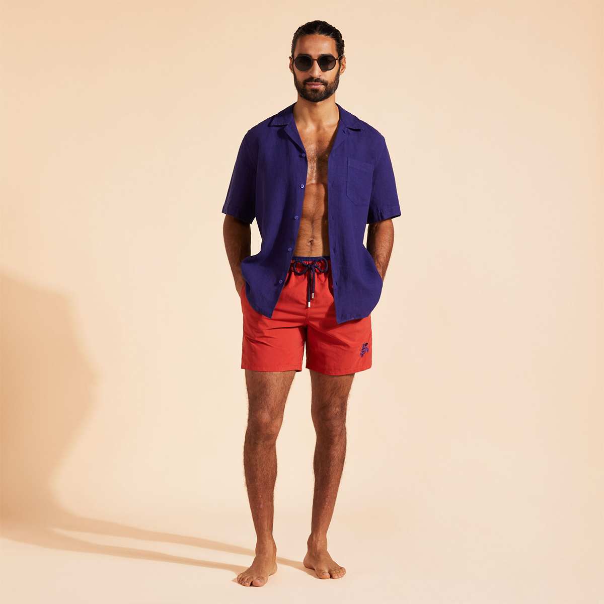 Cesur olun ve stil dolu bir yüzme için kontrastı seçin. Bel bandı ve kontrast renklerde büzme ipi ile bu Mokami erkek mayolarındaki iki tonlu efekt, zamansız tasarımları sıra dışı gösteriyor.