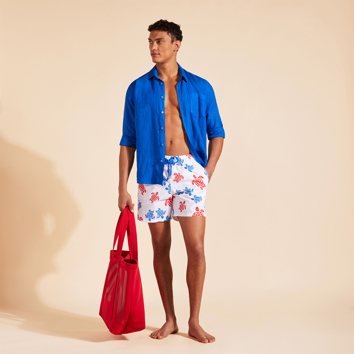 Vilebrequin’in ikonik, 1970’lerden gelen, Vilebrequin ruhuna sadık ve en sevilen stili. Yumuşak, çabuk kuruyan kumaştan yapılmış bu mayo, iki yan cebi ve arka cebi ile konfor sunuyor. Elastik bel kemerli mayo ve Zamac uçlu büzme ipi ile stil tamamlanıyor.