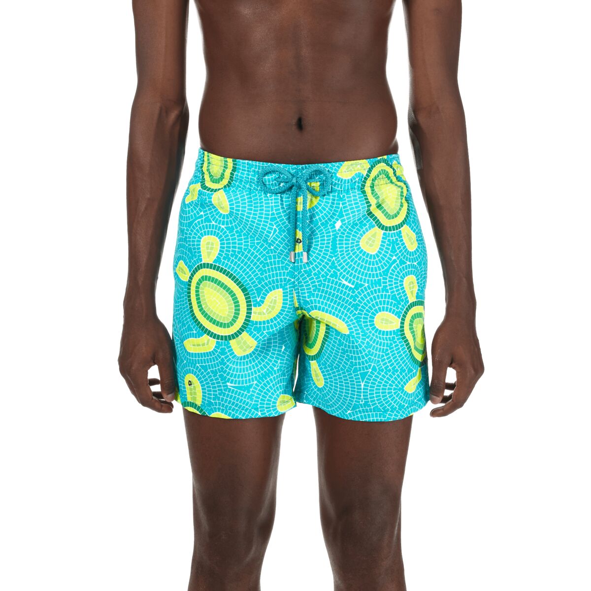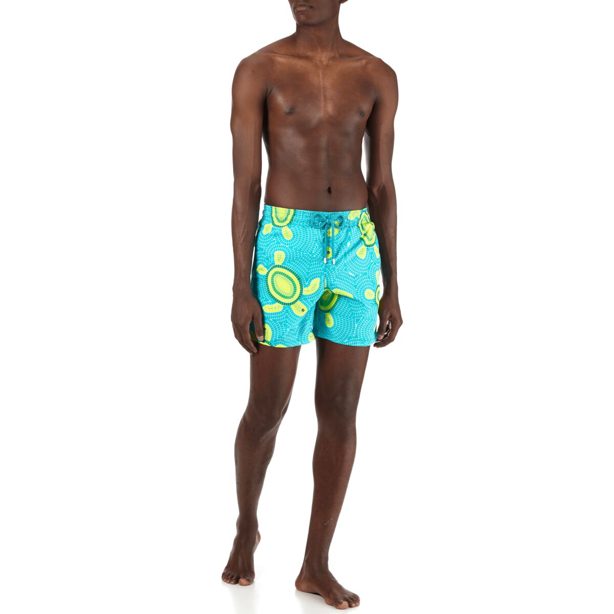Vilebrequin’in ikonik, 1970’lerden gelen, Vilebrequin ruhuna sadık ve en sevilen stili. Yumuşak, çabuk kuruyan kumaştan yapılmış bu mayo, iki yan cebi ve arka cebi ile konfor sunuyor. Elastik bel kemerli mayo ve Zamac uçlu büzme ipi ile stil tamamlanıyor.