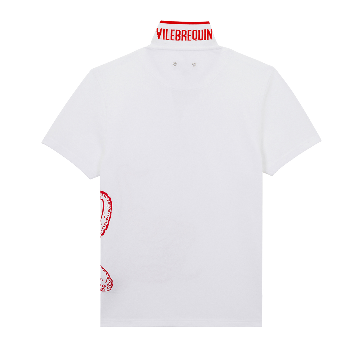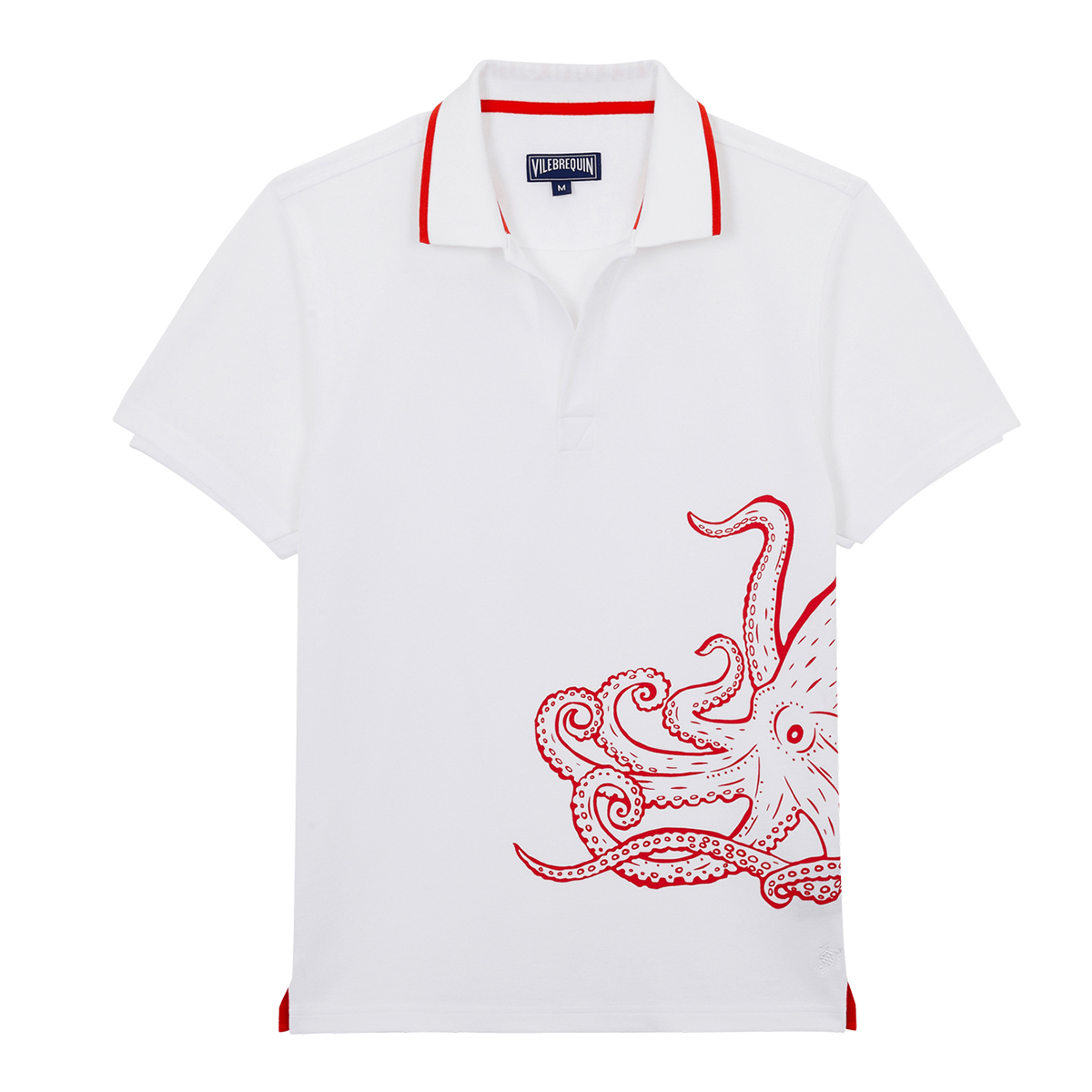 Göz alıcı bir ahtapot baskılı, yaka ve yan yırtmaçlarda kontrast süslemelerle zenginleştirilmiş, kısa kollu polo tişört. Arka yakasında ikonik Vilebrequin logo detayı yer alıyor.