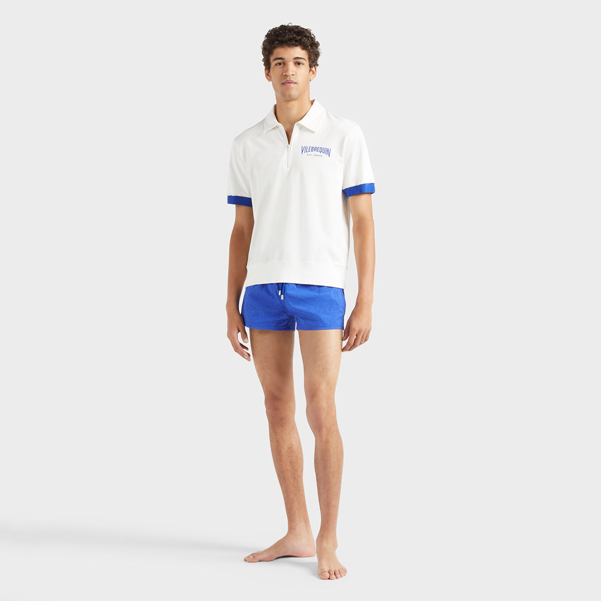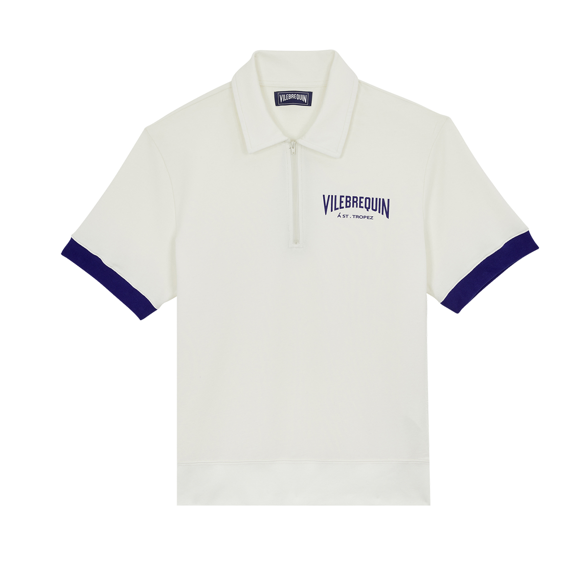 St. Tropez stilinden ilham alan, vintage tarzda, kısa kollu erkek polo tişörtü. Rahatlık için hafif kumaştan üretilmiştir ve göğüs kısmında Vilebrequin logosu bulunmaktadır.