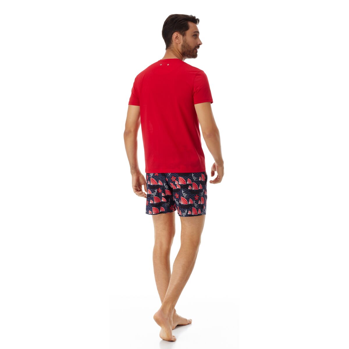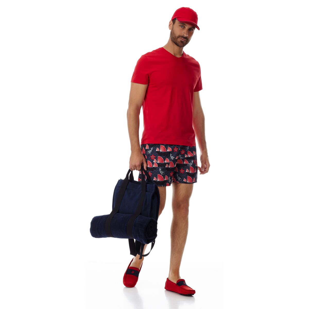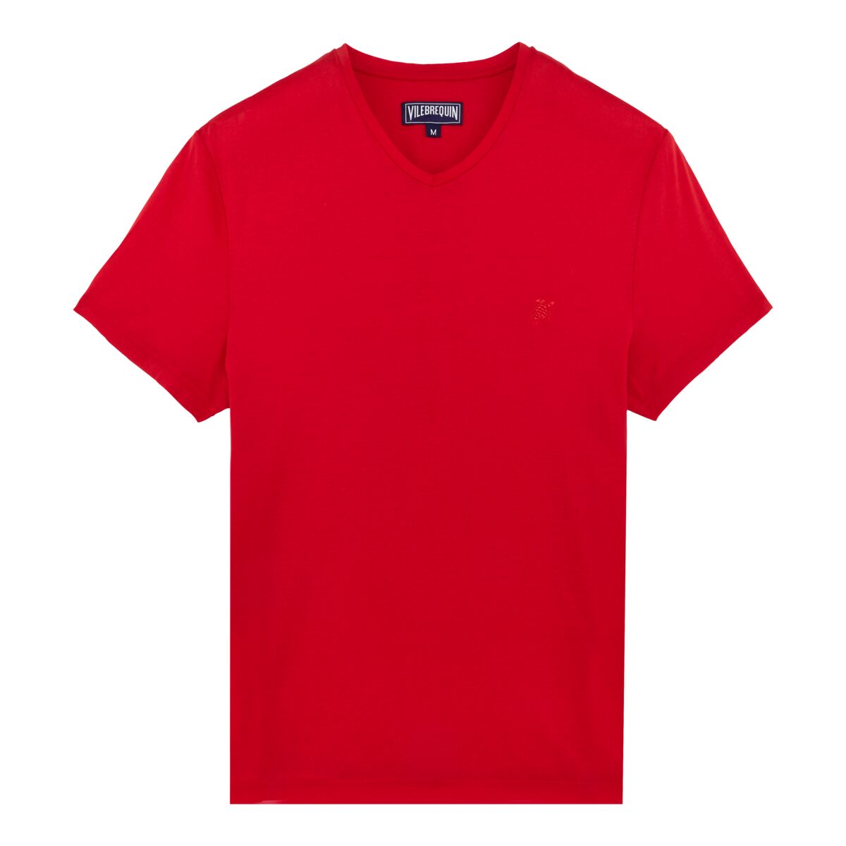Sade ve rahat Tender erkek tişörtü, merserize pamuğun rakipsiz konforunu sunar. Kısa kollu ve V-yakalı bu Vilebrequin tişörtün sırtında iki metal delik detayı ve göğsünde aynı tonda işlemeli ikonik kaplumbağa logosu vardır.