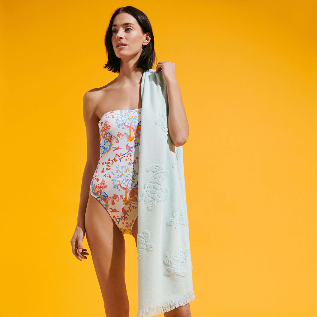 Bu tek parça astarlı mayo, iç destek bandı sayesinde büstiyer olarak giyilebilir. Güneşlenirken beyaz çizgileri önlemek için omuz kayışlarını çıkarmanız yeterlidir. Ayrıca etek veya pantolon ile bir elbise olarak da giyilebilir.