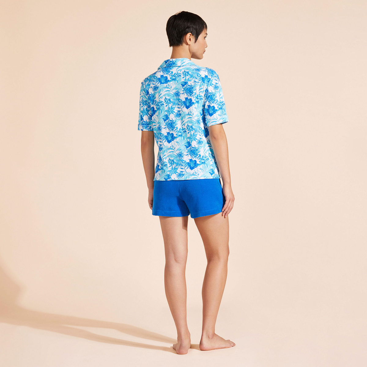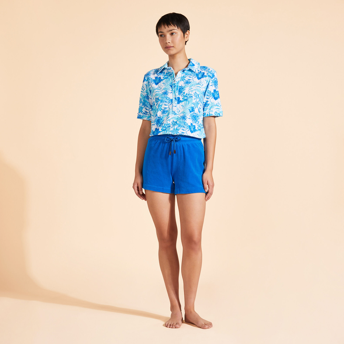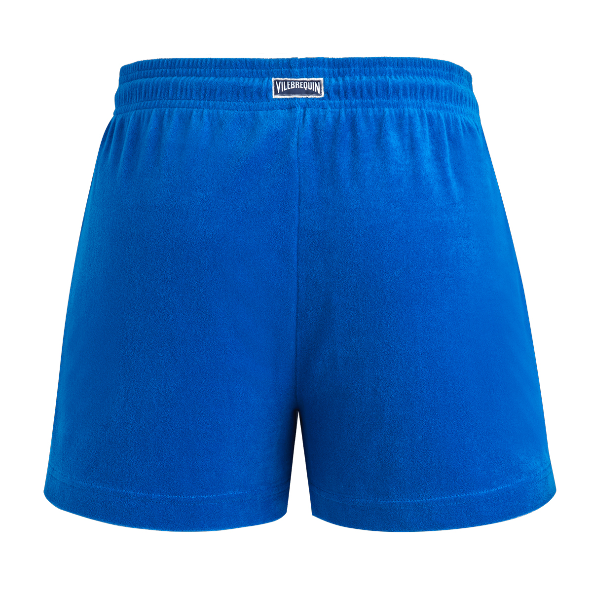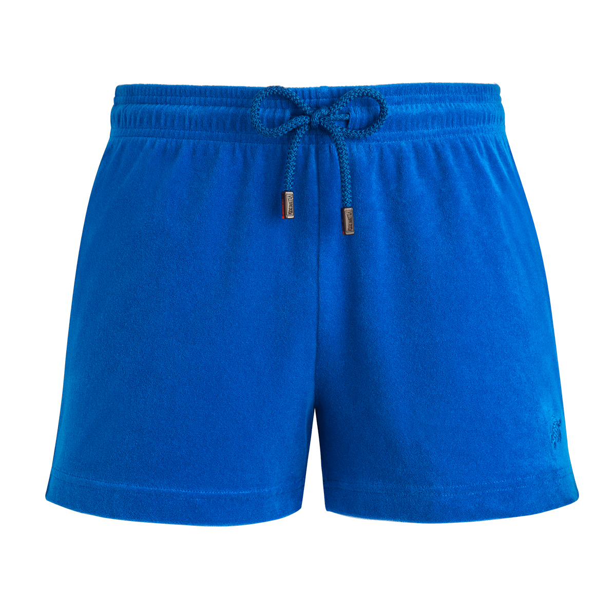 Bu düz renkli havlu şort, göz alıcı düz kesimi ve hareket kolaylığı sağlayan yan yırtmaçlı stili ile konfor ve şıklığı bir araya getirirken aynı zamanda serinlik sağlıyor.
