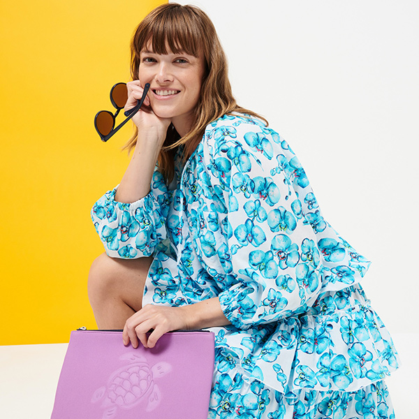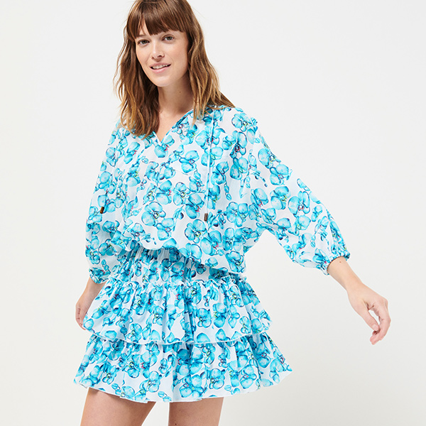 Bu Lauriane Orchidées kadın kısa pamuklu elbise ile tropik çiçeklerin kokusunu içinize çekin. Büyük fırfırlar ve bağcıklı yaka, ona güneşli günler için mükemmel bir Boho şıklığı verir. Beli ve kollar lastiklidir.
