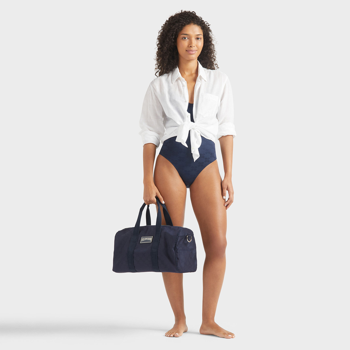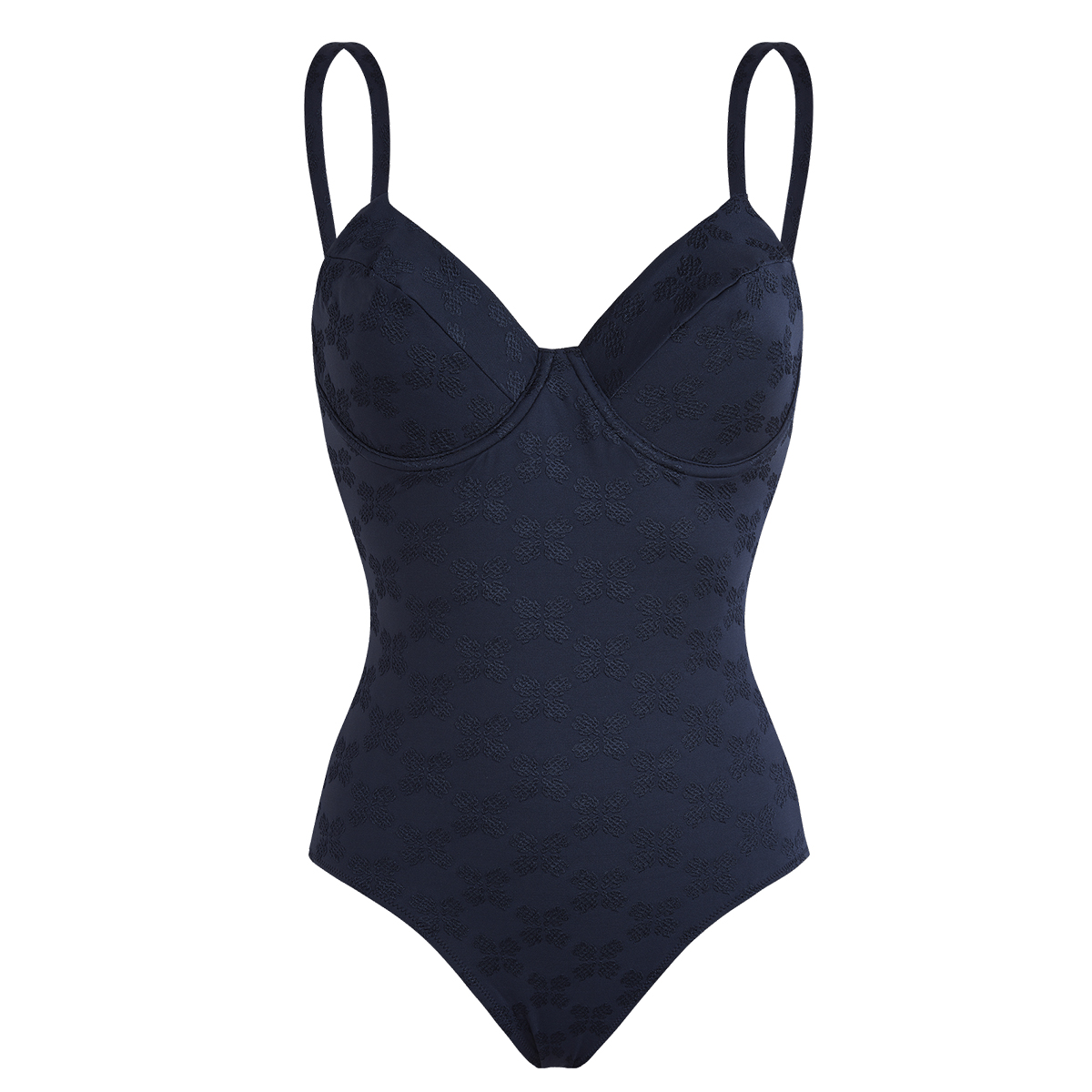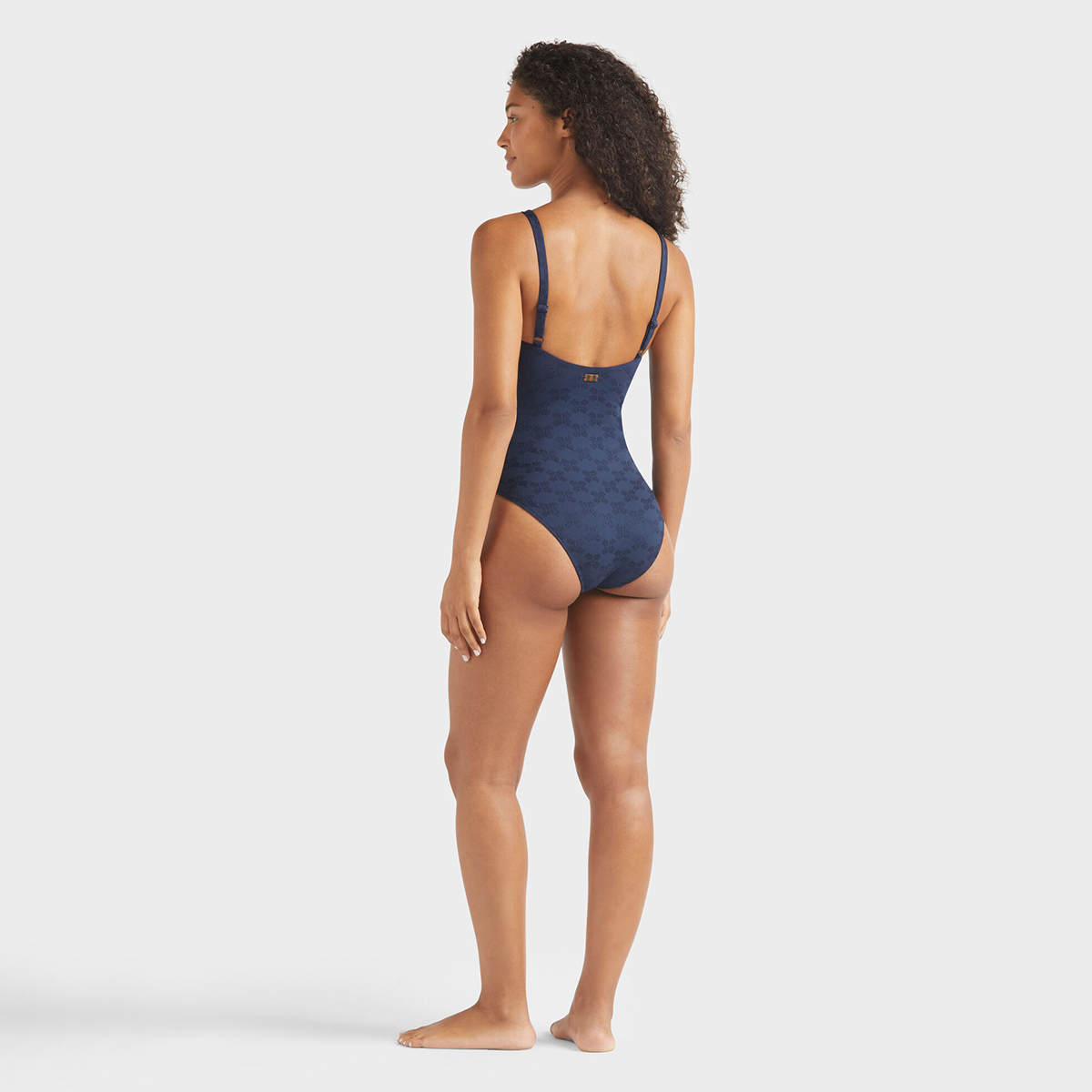 Bu mayonun V yakası şekli vurgularken, ayarlanabilir askılar ve geri dönüştürülmüş poliamid ve elastan karışımlı kumaşı ile rahat bir uyum sunar.