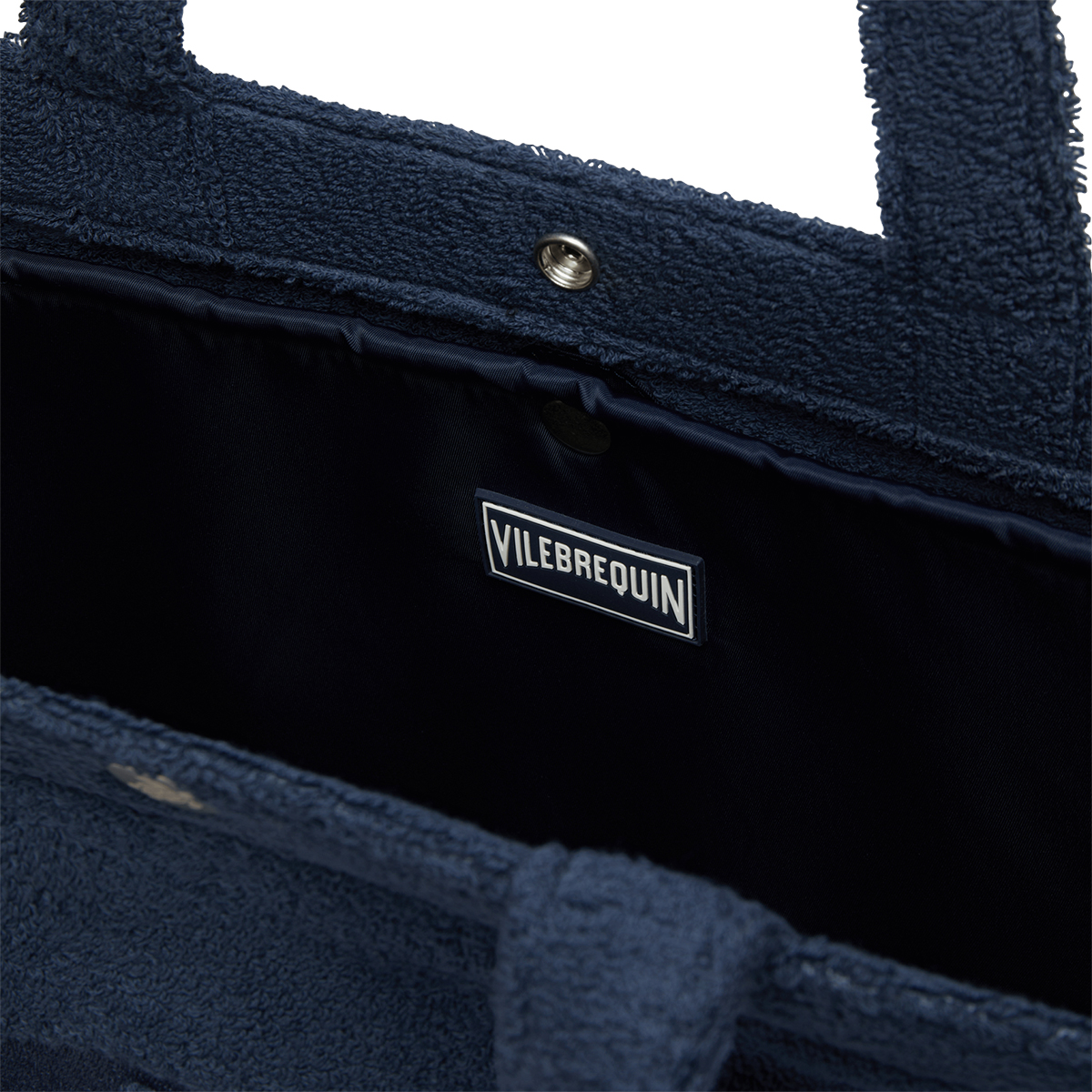 Yumuşak havlu kumaştan üretilmiş, ton sür tona Vilebrequin kaplumbağa nakışı ile süslenmiş pratik bir plaj çantası. Tüm temel eşyalarınızı sığdıracak kadar geniş ve çıtçıtlı kapanışa sahiptir. Ön yüzeyde işlenmiş kaplumbağa detayı Kaplumbağa işlemeli çıtçıtlı kapanış Çıtçıtlı büyük iç cep Ölçüler: Derinlik 8 cm x Yükseklik 40 cm x Genişlik 18 cm Unisex plaj çantası